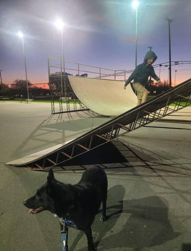 I moved to London to pursue a Masters, and Eli stayed behind with my parents on their working horse ranch, shadowing them through every project. Never leashed. Always present. The family took to calling him "The General" as he was watchful, steady, and alert to every arrival and departure. It was a quiet testament to how far he had come from the dog who once tore through floors looking for somewhere to put his energy.